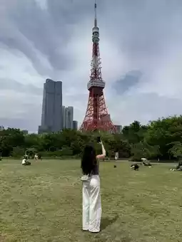 A must-see spot when in Tokyo is to take a photo with Tokyo Tower. It's one of Japan's most iconic landmarks, located in Tokyo's Minato district. Everywhere you look, you'll see red pillars. Tokyo Tower resembles the Eiffel Tower.