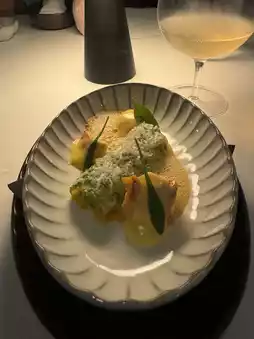 The lobster and cannelloni, garnished with ricotta cheese and tarragon, was absolutely delicious.