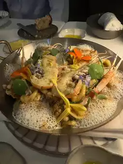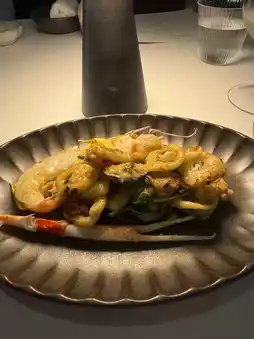 Orecchiette pasta ear-shaped pasta. Served with langoustine, clams, and squid.