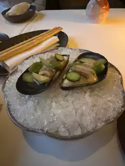 We start with refreshingly marinated mussels.