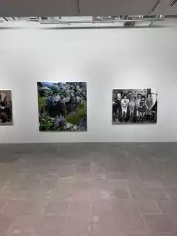 • The exhibition space is spacious with high ceilings, ensuring a clear view of the artworks.