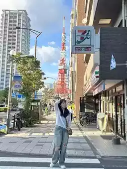 Tokyo Tower suddenly appears between the convenience store sign and the buildings!