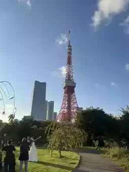As you take a leisurely stroll, you'll spot couples taking wedding photos, and the peaceful atmosphere, like an urban oasis, will naturally slow your pace. The sight of the blue sky, buildings, and red Tokyo Tower blending together was truly a picturesque moment. πΏπ