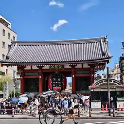 Overlooking Kaminarimon Gate, Nakamise-dori Street, and Sensoji Temple.