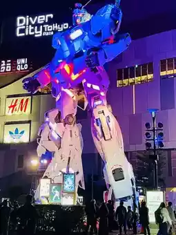 Outside the mall, there's an iconic Gundam model, a favorite of both adults and children. Standing 19.7 meters tall, it frequently puts on light shows 🎤 and catches our eye👀👁️👁️.