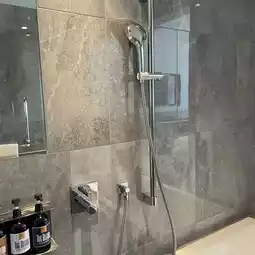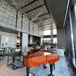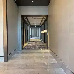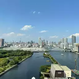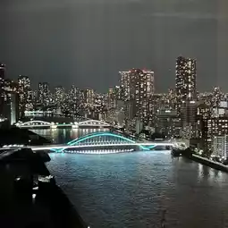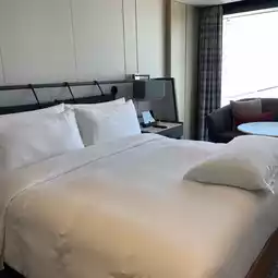 I stayed here for free as part of my Marriott benefits. It's in a rather inconvenient location, and the entrance is hard to find. They ask for your name as soon as you enter the entrance. Then, I headed upstairs to the hotel reception. The view was amazing, but the reception and lounge were smaller than I expected. The view was toward the Skytree, but not much of the Rainbow Bridge. Apparently, rooms with a good view of the Conrad have better views and balconies. I was assigned a room on a higher floor, but the view was toward the Gate Bridge. It felt like I was looking at the view through the gap between the building and the hotel. The room was spacious! The bathroom was completely visible through the glass. The sink was spacious, and they even had the famous book-shaped amenities. The bed was truly princess-like. The furniture was also beautiful. They had Sarutahiko coffee. There were bottled drinks with stoppers in the refrigerator. Oh, and there was a tea whisk for making matcha. However, there was no space to put anything. There was no desk. I guess desks aren't necessary in a luxury hotel. One thing that felt a little odd was the staff uniforms. They were all black, and they looked like part-timers at an izakaya. Apparently it was designed with a ninja theme. Overall, for this price, I think I'd stay at a well-established hotel. It might be a good, innovative option for young couples looking to make an effort to stay here. #TokyoHotel #LuxuryHotel