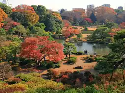 This elegant garden, reminiscent of a feudal lord's garden from the Edo period, features a pond and seasonal scenery. A leisurely stroll through this strolling garden, where the view changes with every step, will make you forget you're in the city. There are plenty of benches for easy resting, making it a relaxing spot even for solo visitors.