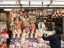 This street is lined with more than 90 traditional shops, offering everything from local sweets like ningyo-yaki (doll-shaped red bean cakes) and kaminari-okoshi (crispy sweet rice crackers), to beautiful souvenirs such as fans, yukata, lucky charms, and handmade crafts 🍡🎐