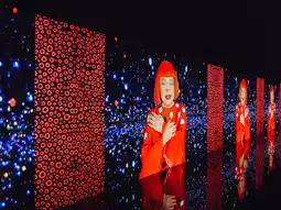 You’ll see her vibrant dot paintings, surreal sculptures, and of course, the legendary Infinity Mirror Room, where reflections stretch endlessly in every direction. The top floor often hosts a small reading area or space to view the city from above, offering a quiet contrast to the colorful chaos below.