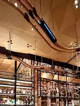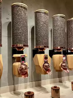 Though it’s often crowded and lively, there’s something soothing about the gentle hum of beans flowing through the copper pipes overhead. The combination of music, chatter, and that signature coffee aroma creates a warm, sensory experience that’s both energizing and comforting — the perfect escape in the middle of the city.