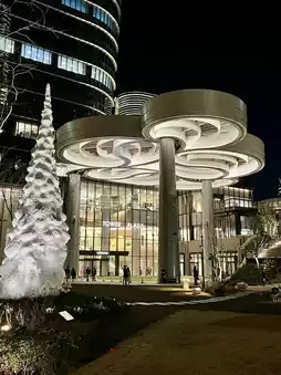After work, we took a quiet evening stroll through Azabudai Hills, where the city lights shimmered beneath the massive Arena roof “The Cloud.” Its swirling, futuristic design stands out beautifully against the night sky — a true symbol of Tokyo’s modern elegance.
