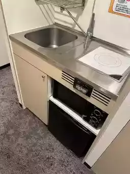 Hotel Livemax BUDGET Shinbashi: Not just a microwave! The kitchen even comes with a washing machine.