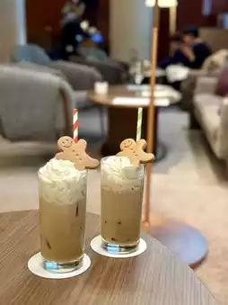 We enjoyed a non-alcoholic sparkling wine and a sweet, creamy café latte topped generously with whipped cream. The combination was delightful — just the right balance of elegance and comfort.