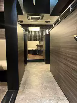 The table seating on the second floor isn't private, but it's designed so that it's not too visible from the other seats, making it a comfortable space. 😌