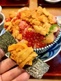 Located in Tokyo's Mungyeong Ward, Edo Fuji is a restaurant renowned for its sushi and seafood rice bowls featuring fresh seafood. The exquisite seafood rice bowl, in particular, boasts a generous portion of over a dozen different seafood varieties, including haddock, salmon roe, and shrimp, offering a feast for the eyes and taste buds.