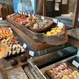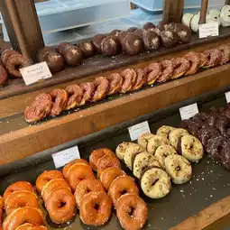 • This shop's donuts are characterized by their soft, chewy mochi-like texture, thanks to the Japanese pumpkin (kabocha) and special dough. This creates a texture that's very different from your typical donut.