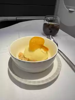 One of the highlights was the in-flight meal 🍱. This time, I opted for Japanese cuisine. From the beautifully presented appetizers to the main dishes of simmered vegetables, grilled fish, and braised beef, every bite was authentic and flavorful, defying the expectations of airplane food. The meal included edamame rice, miso soup, and green tea, delivering satisfaction akin to dining at a high-end restaurant. The dessert, a refreshing citrus sorbet, was the perfect finale, leaving me thoroughly impressed 🍊✨