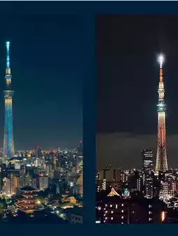 The Tokyo Skytree light show currently features three different themes, changing daily to express the continuous flow of time—today, tomorrow, and the future.
