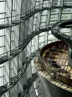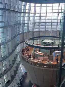 • Inside the main hall, featuring a concrete cone (the 2nd and 3rd floors offer stunning views)