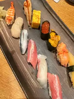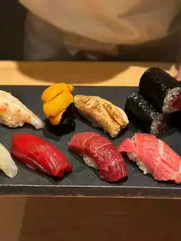 The omakase menu features the freshest seasonal fish sourced daily from Tokyo’s Toyosu Market, each piece prepared with impeccable timing and delicate care. 🍶 From buttery otoro (fatty tuna) to perfectly seasoned rice, each sushi melts in your mouth — a true taste of harmony. 🍣💫