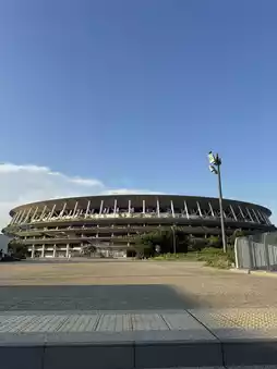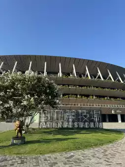 Under the blue sky, I was awed by the magnificent stadium, which combines wood and steel.