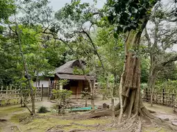 Tucked within the grounds of the Tokyo National Museum in Ueno Park is a serene, traditional Japanese strolling garden. This is not a large, sprawling landscape, but a refined and intimate space designed to complement the museum's world-class collection. It features a central pond, stone lanterns, carefully placed rocks, and a classic azumaya (thatched-roof gazebo), creating a peaceful oasis that feels a world away from the bustling park outside.