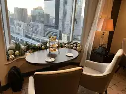 I enjoyed a lovely afternoon tea at the Club Lounge of InterContinental Tokyo Bay. During the Christmas season, the lounge is beautifully decorated with festive touches, creating a warm and elegant atmosphere.