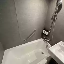 This is the twin room at Shiba Park Hotel. The Shiba Park Hotel as a whole has an atmosphere reminiscent of a stylish library, and I was able to relax. Not only was the bed fluffy, but the bathroom was also spacious and easy to relax in.
