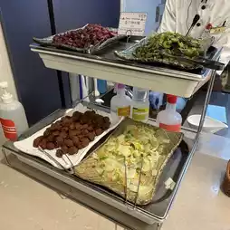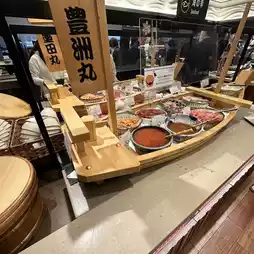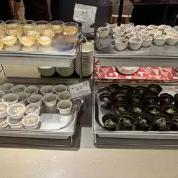 The highlight is the seafood plates served on a boat in the middle of the buffet area. There are even two types of salmon roe available. After choosing your favorite ingredients based on vinegared rice, you can create your own original seafood bowl by choosing your favorite flavor from the many soy sauces nearby!