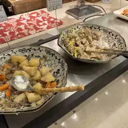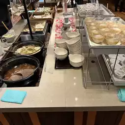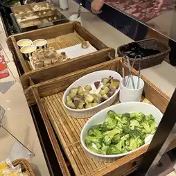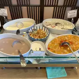 In addition to the basic buffet menu, there is also freshly fried tempura, delicious gratin, bread, and more...it's easy to overeat in the morning. Of course, they also have a selection of drinks and desserts (the Western-style shiratama was delicious).