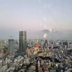You can pay an additional 500 yen to go out to the Sky Deck and see it.