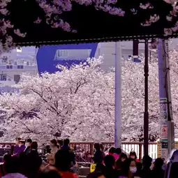 Nakameguro Station is convenient for accessing Meguro River, but there are also beautiful cherry blossoms right in front of Nakameguro Station. It is part of the cherry blossom-lined street of Meguro River, but the trees upstream and downstream from here tend to be featured in the media. In fact, there are such beautiful cherry blossoms right in front of Nakameguro Station.