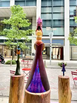 What makes it special is its ever-evolving nature — the artworks are replaced every few years, ensuring that the streetscape always feels new and inspiring. Surrounded by glass towers, luxury boutiques, and cafés, the vibrant sculptures add warmth and creativity to the urban landscape.