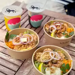 After checking out most of the restaurants at Umikaji Terrace, we chose to have lunch at By The Shrimp. The Hawaiian-style decor and the view of planes landing are truly captivating. Of course, their garlic shrimp butter bowl is unforgettable. There are three flavors: original, spicy, and creamy lemon; all served with a slice of lemon. The crispy shrimp💯 and the fragrant rice are a perfect match.