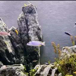 - Transparent undersea tunnel: schools of fish swim underfoot