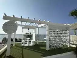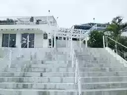 The moment I stepped onto the island, I was captivated by this white world. Steps ascended, lined with a variety of unique shops. Although the weather was a bit overcast, the gentle sea breeze added a touch of leisure and comfort to the atmosphere. I strolled up the stairs, browsing the dazzling array of shops, from street vendors selling hamburgers and tacos to a famous dessert shop with a sign proclaiming "Lucky Pancake."