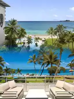 The view of the sparkling ocean and white walls is sure to be a special experience. ☀️