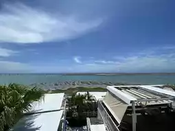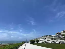 As you look at the blue sea and sky, planes fly by