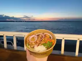 📷 Photo Tip: Take a cross-section shot of the taco rice, showcasing the runny omelet, with the ocean and sunset in the background for a romantic vibe.