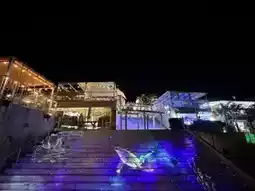 Every hour, the staircase illuminates with vibrant light projections, accompanied by changing sound effects, creating a scene that evokes the night sky's constellations descending to the earth. The rhythmic flow of light and shadow creates a magical "Stairway to the Stars," showcasing mythical and natural elements like Pegasus, dolphins, and eagles.