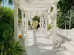 Enter into a maze of white walls covered in vegetation with a magnificent view of the Okinawan beach, and even airplanes as they land at Naha airport.