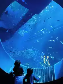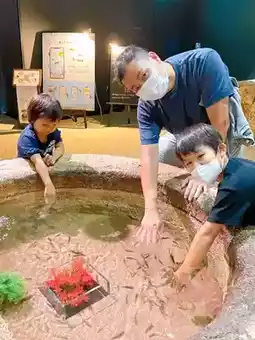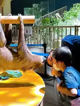 This time, we skipped the more distant aquarium and instead went to the DMM Kariyushi Aquarium, which just opened this year. It's located inside the iisa shopping mall, which also opened this year. The special thing about it is that there are baby sharks for the kids to pet and sloths for them to see up close, which the kids found quite fascinating!