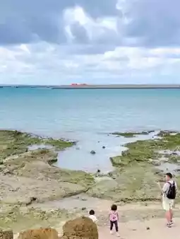 This is my second time in Okinawa. Friends say Okinawa can be a bit stuffy, but I actually prefer its more relaxed feel. I love the wide sky, the glassy green water, and the cool breeze with a subtle sea scent. Of course, I love the spacious and fun-filled free playground.
