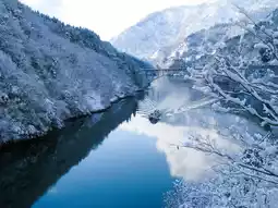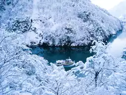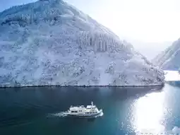 The Shogawa Gorge Tour Boat is a popular sightseeing project suitable for all seasons in Toyama Prefecture. 🚢 When winter comes, the valley embraced by nature is covered in a silver world, making the scenery here even more beautiful ❄⛄.