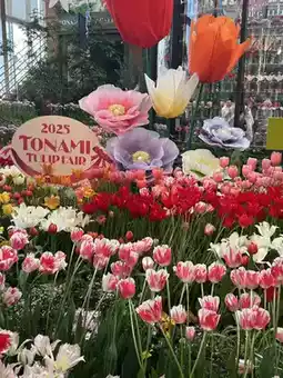 You can purchase flowers and tulip bulbs, and there is also a souvenir shop selling Toyama specialties. There are also food stalls, and the tulip-flavored soft serve ice cream you can buy at the cafe was very delicious. 🍦