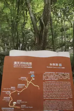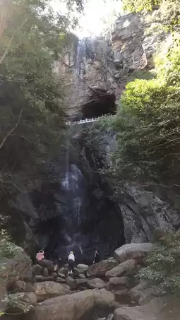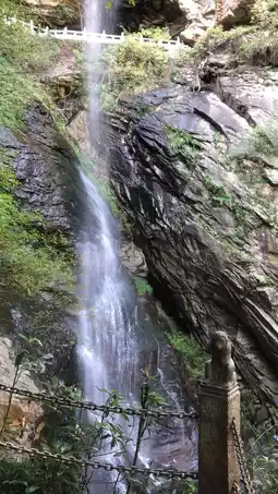 “I come to visit the Water Curtain Valley, where the flying spring is most refreshing.” This is a famous poem left by the Song Dynasty scholar Zhu Jia when he visited this place. Today, some ancient relics remain here for visitors to admire. Zhu Xi used a curtain to describe the waterfall because there is a cave behind the waterfall, also known as the Water Curtain Cave. According to historical records, the Water Curtain Cave is 13 meters high, 7 meters deep, and 5 meters wide. “A cave opens, and a waterfall hangs at the door.” The waterfall is 35 meters high, gushing down like a curtain.