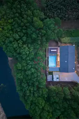 👉 The property features 12 scenic guestrooms and a riverside restaurant, plus a café, pool, library, and viewing decks.