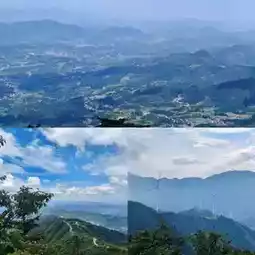 Tianyueguan Huanglong Mountain is located in Tongcheng County, Xianning City, Hubei Province. Its main peak is Zhijiaolou, with the highest altitude of 1,528.3 meters. It spans three provinces of Hubei, Hunan and Jiangxi. The Huanglong Mountain hiking route goes up through the ridge of Huanglong Mountain. The mountain top has blue sky, white clouds and a big windmill, and the scenery is beautiful. The mountains below are green and magnificent. It is so pleasant.