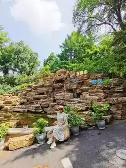 Entering the park, the stacked stone rockery is particularly beautiful against the backdrop of green trees. It has the words Yuhuang Mountain and other words on it. Many people take pictures here;