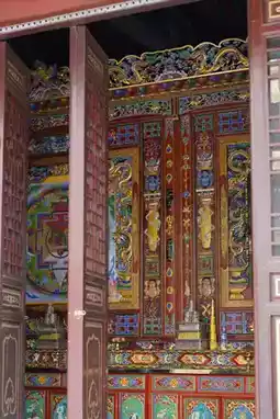 The colors of the temple's architecture are very beautiful, with a dazzling golden pagoda and Dharma Wheel Pavilion. The detailed Chinese-style temple eaves with carved beams and painted rafters are completely different from the traditional temple layout.